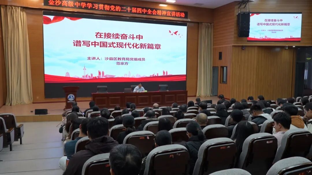 12月10日下午,学习贯彻党的二十届四中全会精神区委宣讲团到沙县区金沙高级中学宣讲。 区委宣讲团成员、区教育局党组成员范宗方以《在接续奋斗中谱写中国式现代化新篇章》为题,结合教育领域实际和学生成长特点,对党的二十届四中全会精神的核心要义和实践要求进行全面解读,内容具有理论高度与现实温度,让全体教师深受启发。