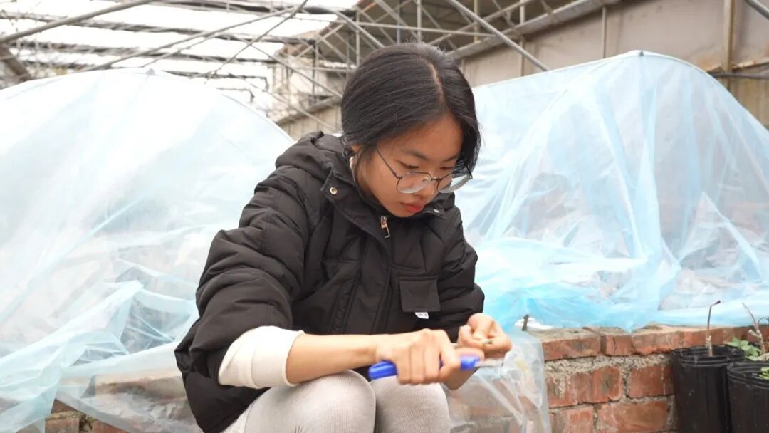 这几年,伴随着乡村振兴声声号角,沙县区广袤的土地上,涌现出一批有情怀、懂技术、会管理的“新农人”。他们怀揣着热爱与智慧前来,在乡村的舞台上大展身手。00后创业者郑慧文便是这群青年追光者中的一员。今天的【新春走基层】,让我们一块走进她。 走进位于虬江街道柱源村的三明国家农业科技示范园,眼前的这位女孩就是郑慧文,别看她个头不高、身形单薄,做起农事来,可是半点不含糊。趁着年初岁末的短暂回暖,小郑正组织工人抓紧收尾绿岩一号猕猴桃苗的嫁接工作,只盼着这批幼苗春节过后就能顺利移栽。