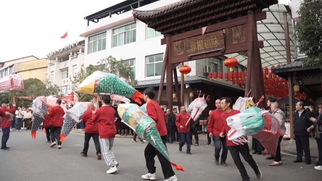 热闹喜庆的游鱼民俗表演率先登场,色彩鲜艳的鱼灯在村民手中灵活舞动,摇头摆尾、穿梭游走,寓意年年有余、吉祥顺遂,灵动的身姿引得现场观众阵阵喝彩,浓浓的年味儿扑面而来。