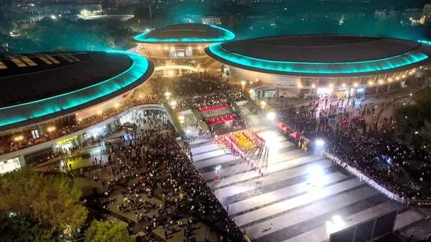 今年元宵节活动还创新加入科技元素,500架无人机凌空集结,以苍穹为幕,光影为笔,勾勒出昂首虬龙、奋蹄骏马、沙县小吃及虬城风光等流光溢彩的画卷,为传统佳节增添现代魅力。