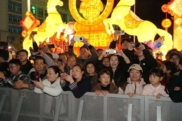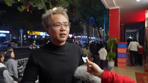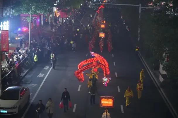 “今天晚上约的家人一起来,感受到非常浓厚的节日氛围,心情很激动,我们还准备跟着队伍到区政府广场一起去热闹,闹个元宵。” 游客 陈仕健: