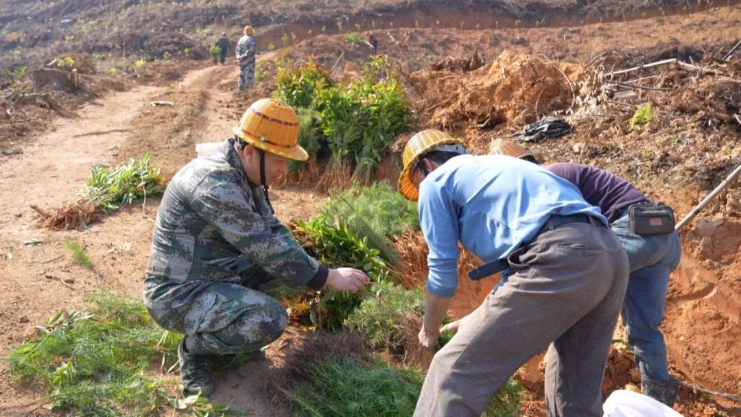 连日来,毗邻马岩水库的老虎床山场上一派热火朝天。工人们正忙着给苗木打浆护根,随后将一株株树苗栽种到提前整好的造林穴中,抢抓时节推进植树增绿工作。